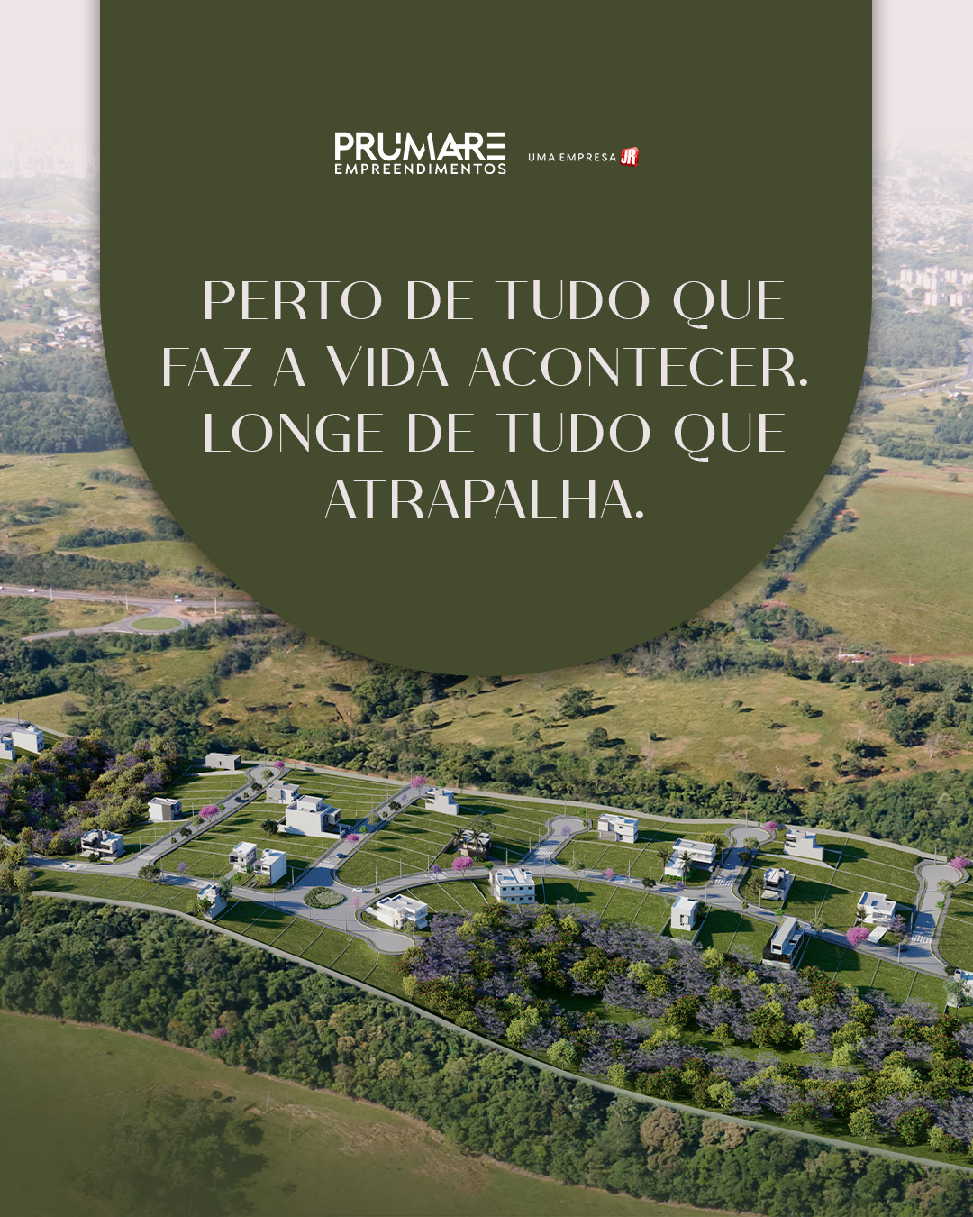 Um condomínio fechado, com 171 lotes variando de 360m² a 634m². O tamanho exato para quem quer construir uma casa com quintal de verdade, sem virar refém da manutenção de um sítio.